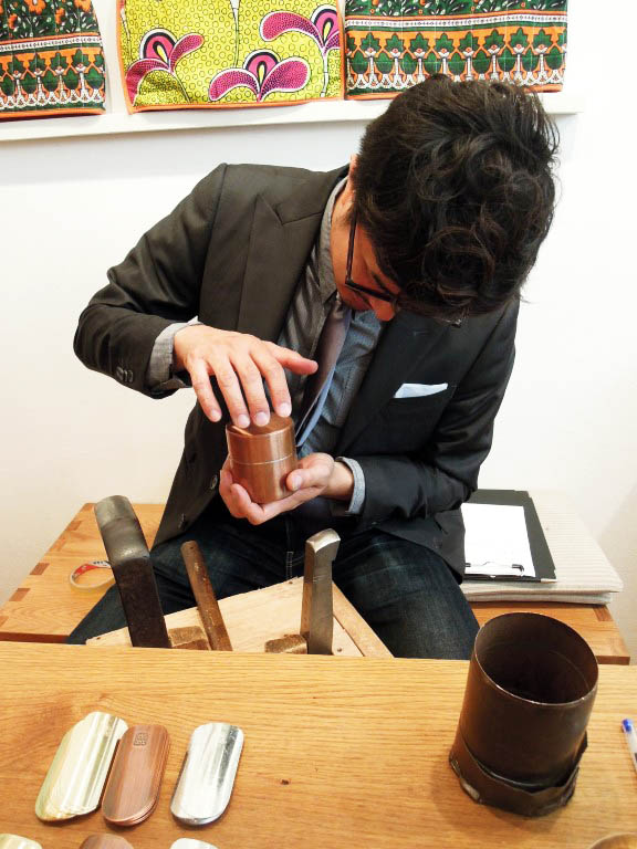 Takahiro (Taka) Yagi of Kaikado, maker of the world’s most refined tea caddies, ‘chazutsu’ in tin, copper and brass (silver to order).